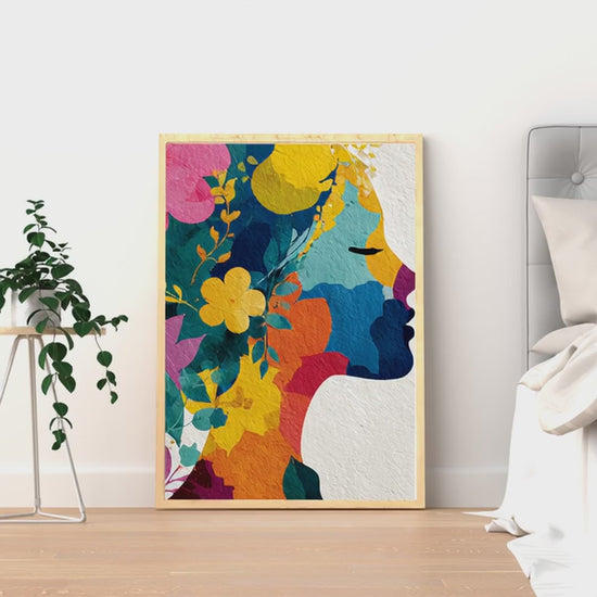 Side Profile with Floral Hair – African-Inspired Wall Art Print celebrates the vibrancy, strength, and elegance of African culture through bold color and modern design. This artwork features a side profile of a woman with flowers forming her hair in bright, striking blocks of color, blending contemporary abstraction with cultural inspiration. Its dynamic palette and detailed composition make it a captivating focal point for any interior.